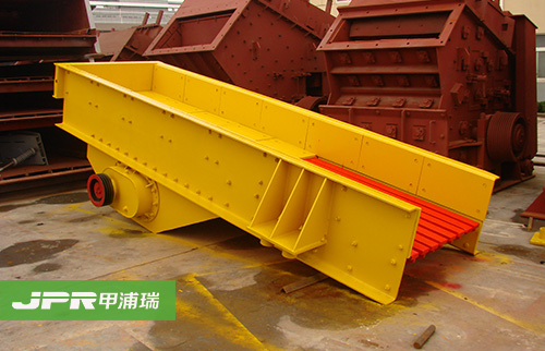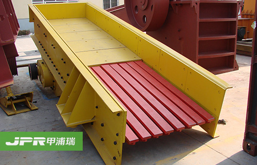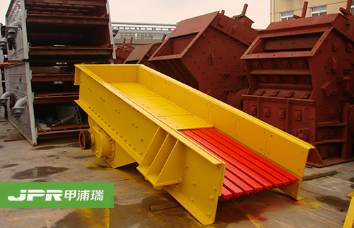 振動給料機在砂石生產線中可為破碎機連續均勻地喂料避免破碎機受料口的堵塞。振動給料機機是利用振動器中的偏心塊旋轉產生離心力,使篩廂、振動器等可動部分作強制的連續的圓或近似圓的運動。物料則隨篩廂在傾斜的篩面上作連續的拋擲運動,并連續均勻地將物料送至受料口內。